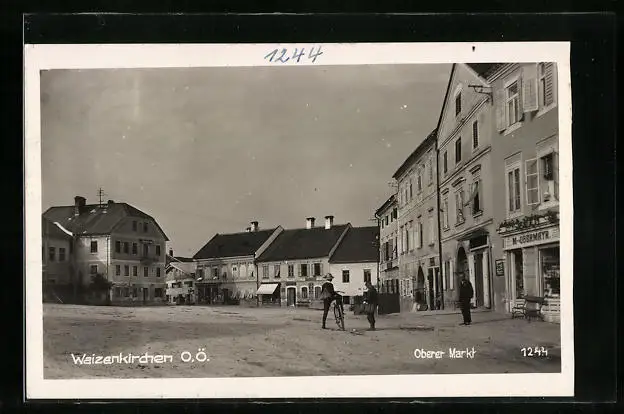 AK Waizenkirchen, Oberer Markt mit Geschäften
