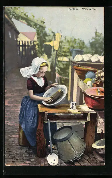 AK Walcheren /Zeeland, Kleine Waschfrau in Tracht