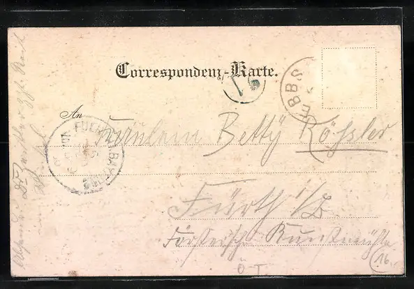 alte Ansichtskarte, gelaufen, Briefmarke entfernt, rückseitig Oberflächenschaden, guter Zustand