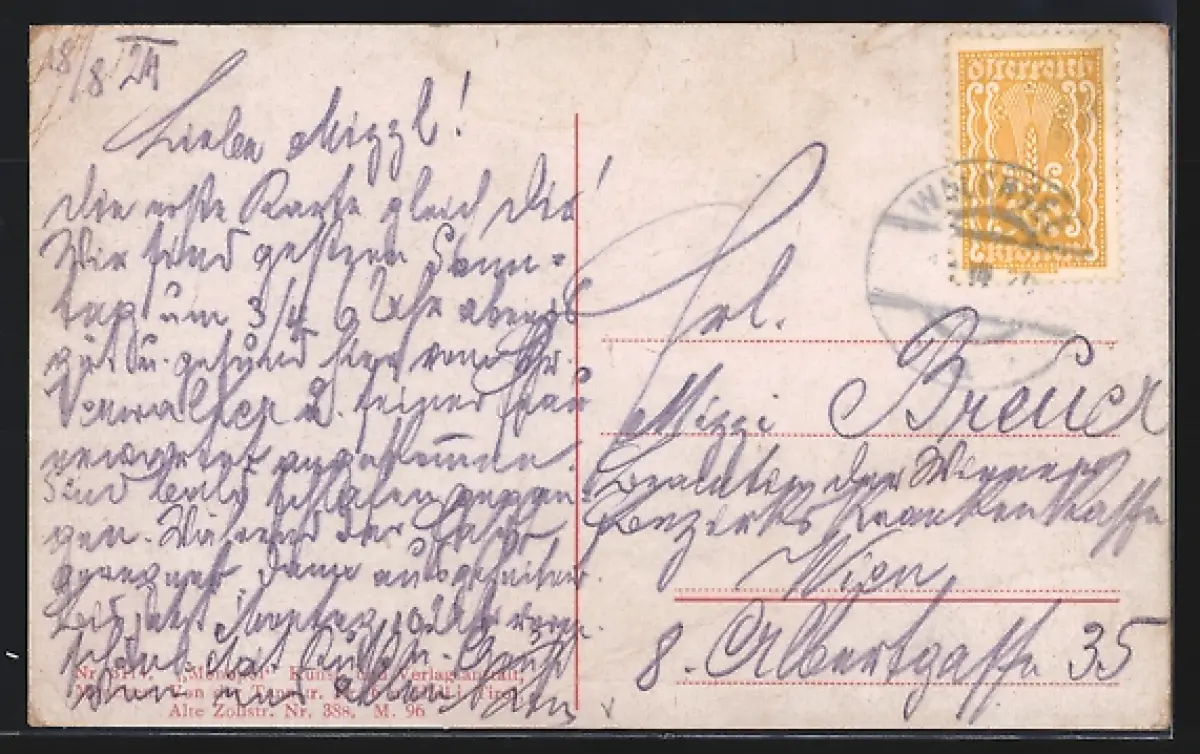 alte Ansichtskarte, gelaufen 1924, Eckknicke re. oben, Abriebspur re. oben, guter Zustand