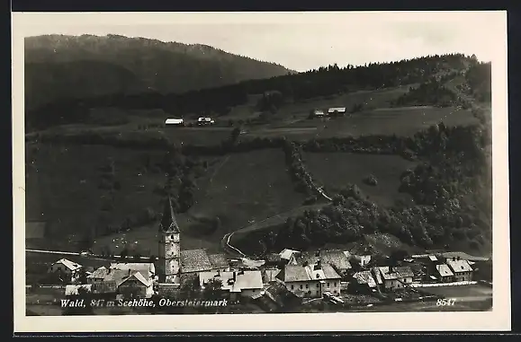 AK Wald /Obersteiermark, Ortsansicht mit Kirche
