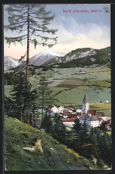 AK Wald /Obersteiermark, Ortsansicht mit Kirche