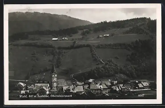 AK Wald /Obersteiermark, Ortsansicht mit Kirche