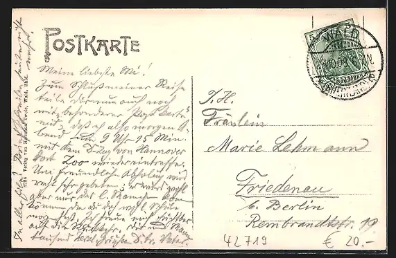 alte Ansichtskarte, gelaufen 1908, guter Zustand