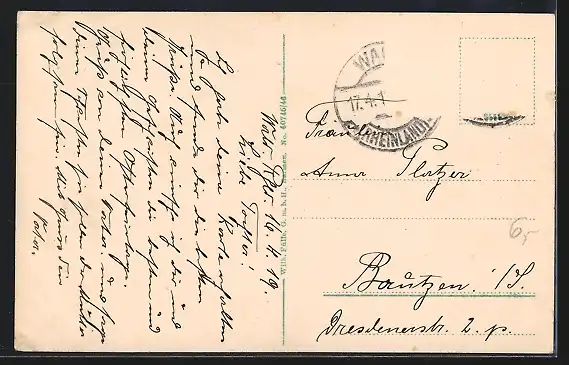 alte Ansichtskarte, gelaufen, Briefmarke entfernt, Eckknicke re., guter Zustand