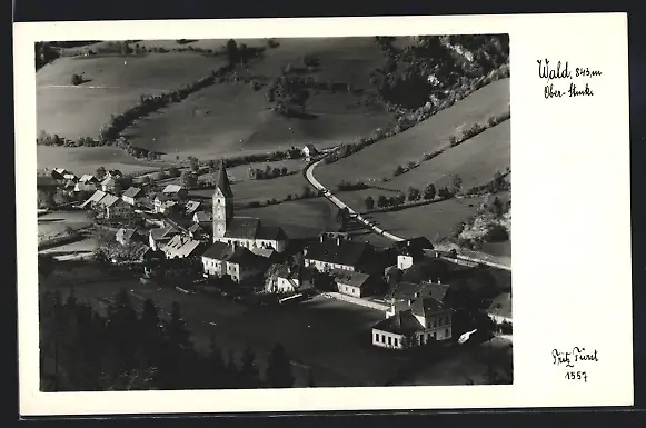 AK Wald, Teilansicht aus der Vogelschau mit Kirche