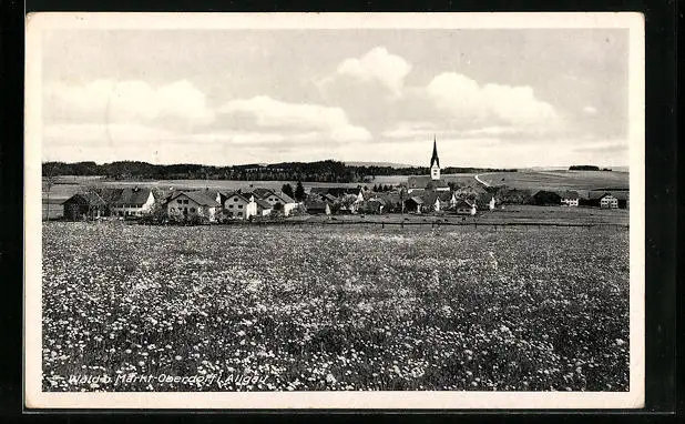AK Wald bei Markt-Oberdorf /Allg., Ortspanorama hinter einer Wiese