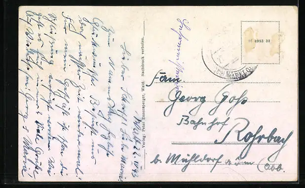 alte Ansichtskarte, gelaufen 1943, Briefmarke entfernt, guter Zustand