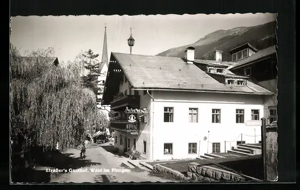 AK Wald im Pinzgau, Strassers Gasthof, Ortspartie mit Kirchturm