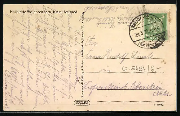 AK Waldbreitbach Kreis Neuwied, Blick zur Heilstätte