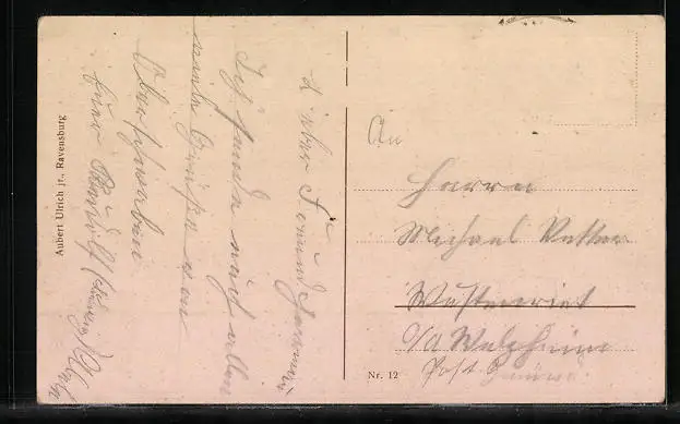 alte Ansichtskarte, gelaufen, Briefmarke entfernt, rückseitig Oberflächenschaden, Stempelspur, Bugspur Ecke re. unten, guter Zustand