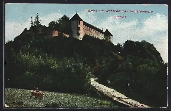 AK Waldenburg i. Württemberg, Schloss mit Rehen