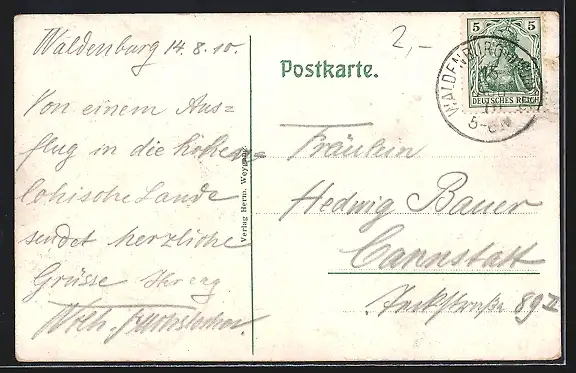 alte Ansichtskarte, gelaufen 1910, guter Zustand