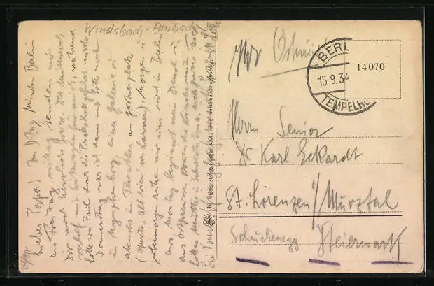 alte Ansichtskarte, gelaufen 1934, Briefmarke entfernt, guter Zustand