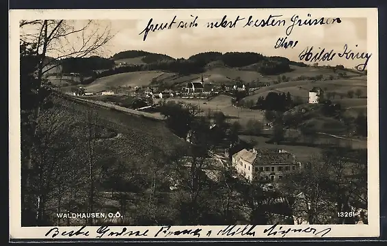 AK Waldhausen /O. Ö., Ortspartie mit Kirche
