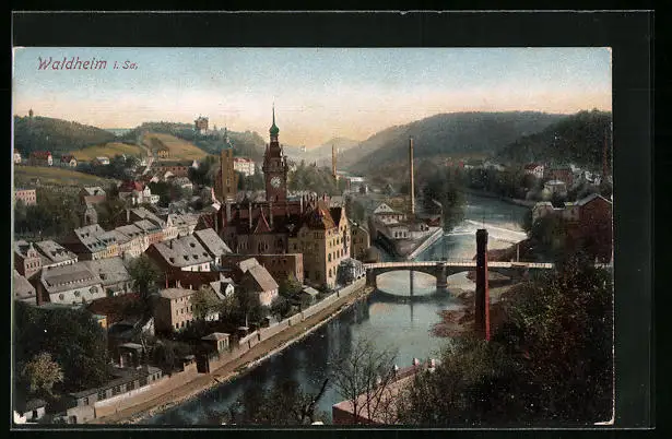 AK Waldheim /Sa., Ortsansicht aus der Vogelschau