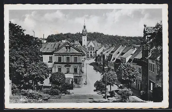 AK Waldheim i. Sa., Strassenpartie mit Rathaus
