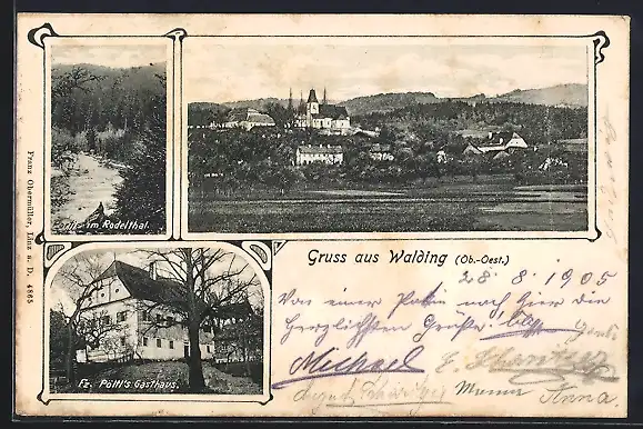 AK Walding, Ortsansicht, Gasthaus Fz. Pöttl's