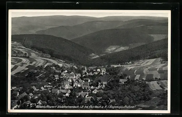 AK Waldkatzenbach i. O., der Höhenluftkurort vom Flugzeug aus