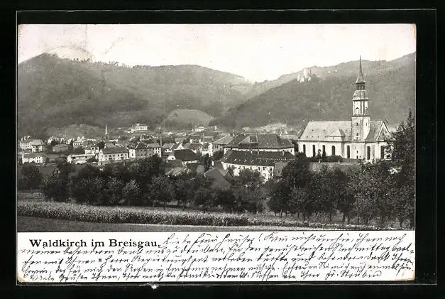 AK Waldkirch /Breisgau, Ortsansicht mit Kirche