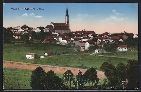 AK Waldkirchen i. Ndb., Ortsansicht aus der Vogelschau