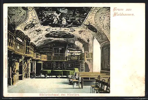 AK Waldsassen, Innenansicht Bibliotheksaal des Klosters