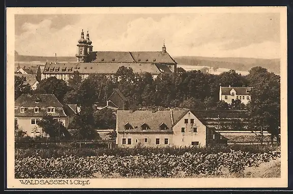 AK Waldsassen i. Opf., Ortspartie mit Kirche