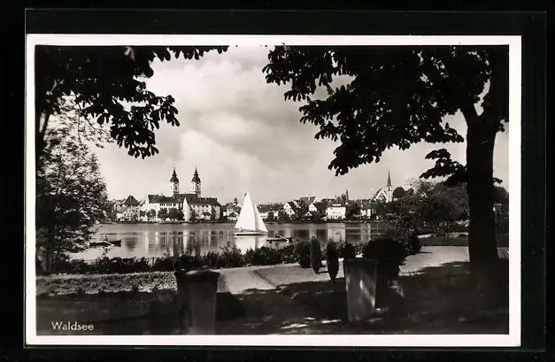 AK Waldsee, Ortspartie mit Segelboot auf See