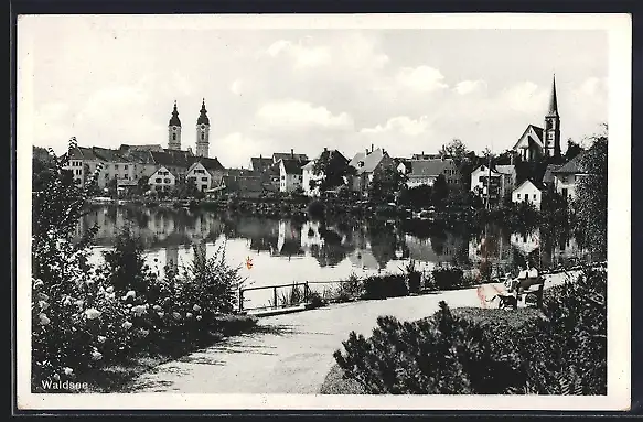 AK Waldsee / Württ., Uferpartie mit Kirche