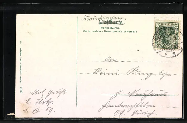 gelaufen 1907, Abriebspuren oben re. und re. unten, guter Zustand