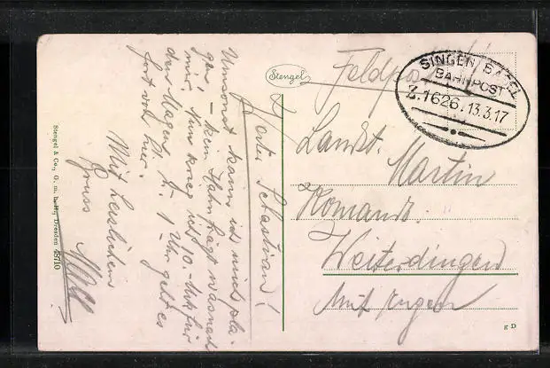 alte Ansichtskarte, gelaufen 1917 als Feldpost, guter Zustand
