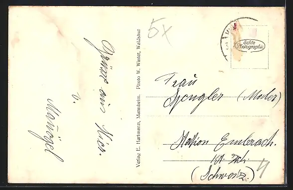 alte Ansichtskarte, gelaufen, Briefmarke entfernt, Eckknick links oben, guter Zustand