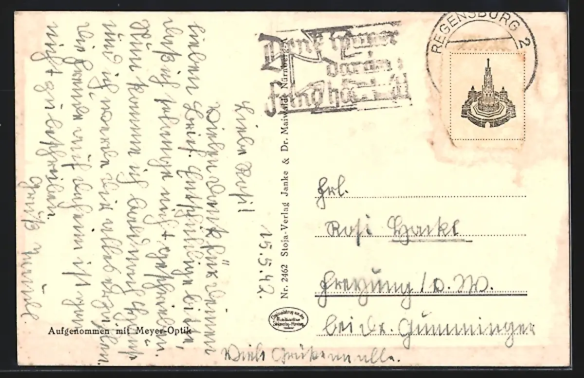 alte Ansichtskarte, gelaufen 1942, Briefmarke entfernt, guter Zustand