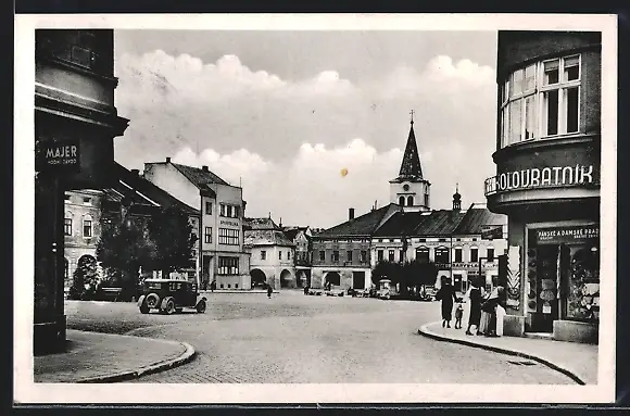 AK Wallachisch Meseritsch, Námesti, Geschäfte am Marktplatz