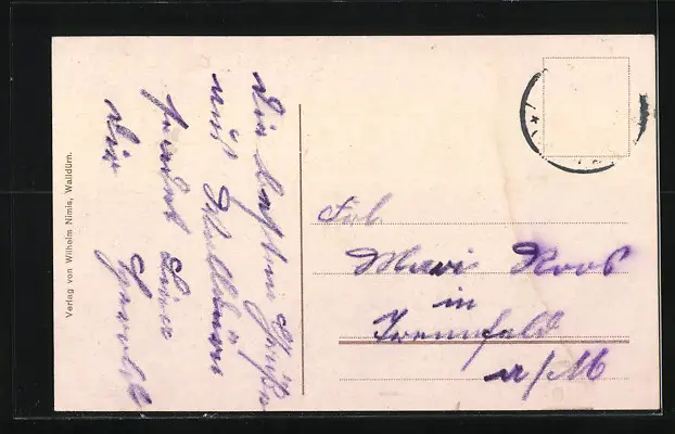 alte Ansichtskarte, gelaufen, Briefmarke entfernt, guter Zustand