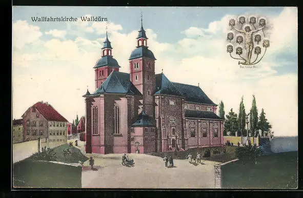 AK Walldürn, Wallfahrtskirche mit Besuchern