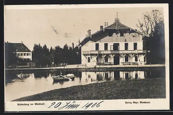 AK Wallenburg bei Miesbach, Ortspartie an einer Flussbiegung