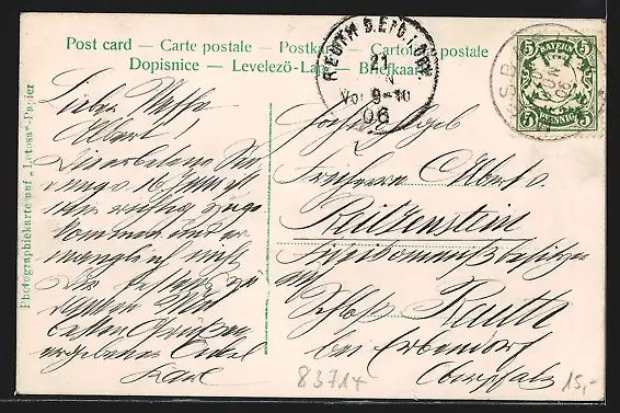 alte Ansichtskarte, gelaufen 1906, guter Zustand