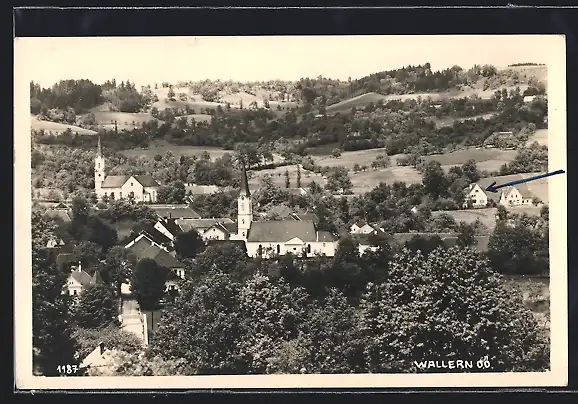 AK Wallern /O.-Ö., Ortspartie mit Kirche