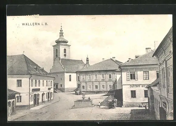 AK Wallern, Ring, Kirche, Brunnen