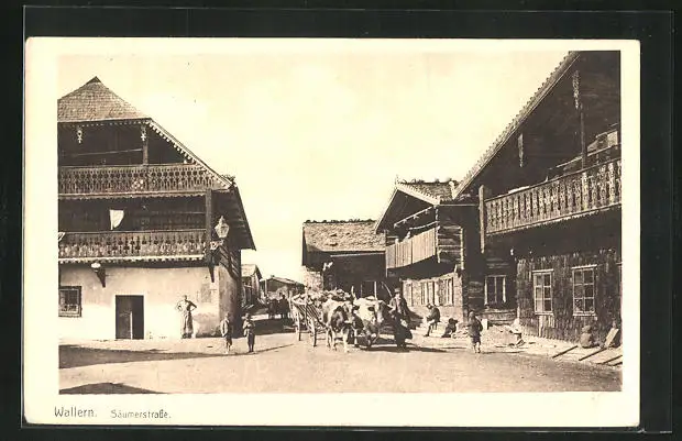 AK Wallern, Säumerstrasse mit Bauern