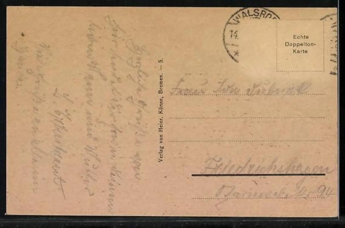 alte Ansichtskarte, gelaufen, Briefmarke entfernt, guter Zustand