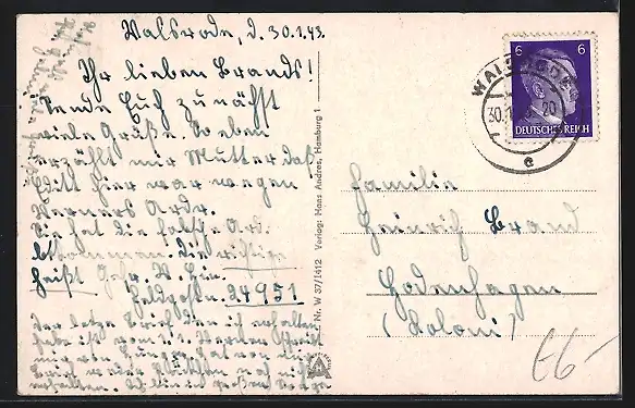 alte Ansichtskarte, gelaufen 1943, Stempelspur, guter Zustand