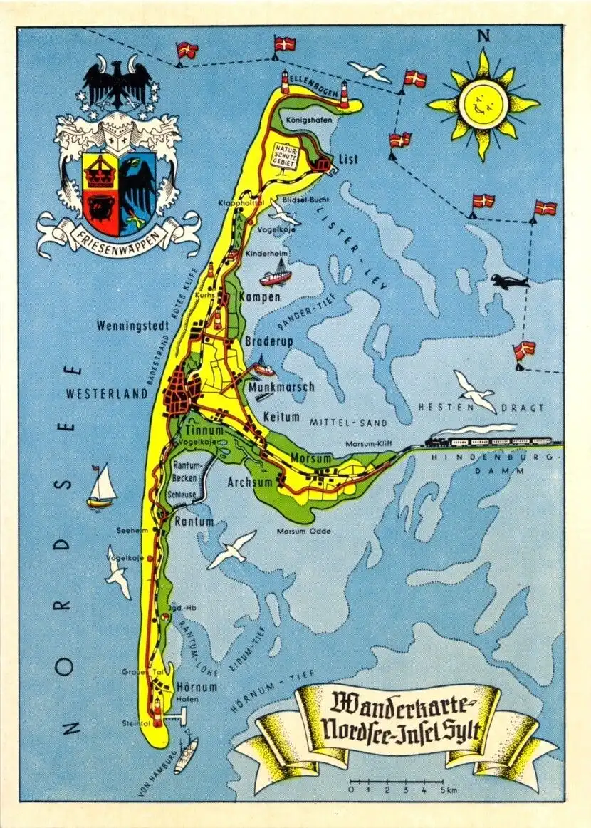Ansichtskarte Wanderkarte der Nordsee-Insel Sylt Erhaltung I-II ungelaufen, um 1959 Verlag: Schöning & Co., Lübeck