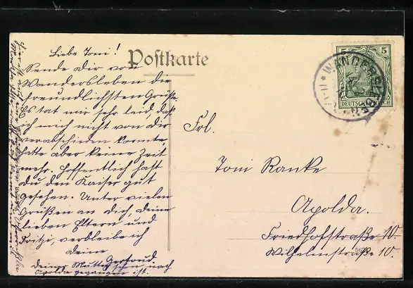 alte Ansichtskarte, gelaufen, Eckknick oben links mit Bugspur, guter Zustand