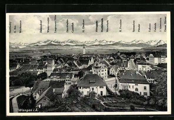 AK Wangen /Allgäu, Ortsansicht mit Gebirgspanorama