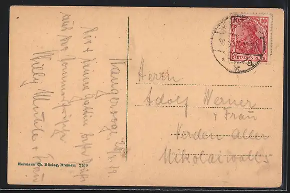 gelaufen 1919, Eckknicke li. oben, guter Zustand