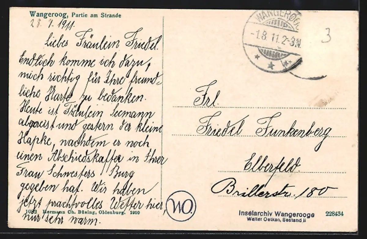 gelaufen 1911, Briefmarke entfernt, guter Zustand