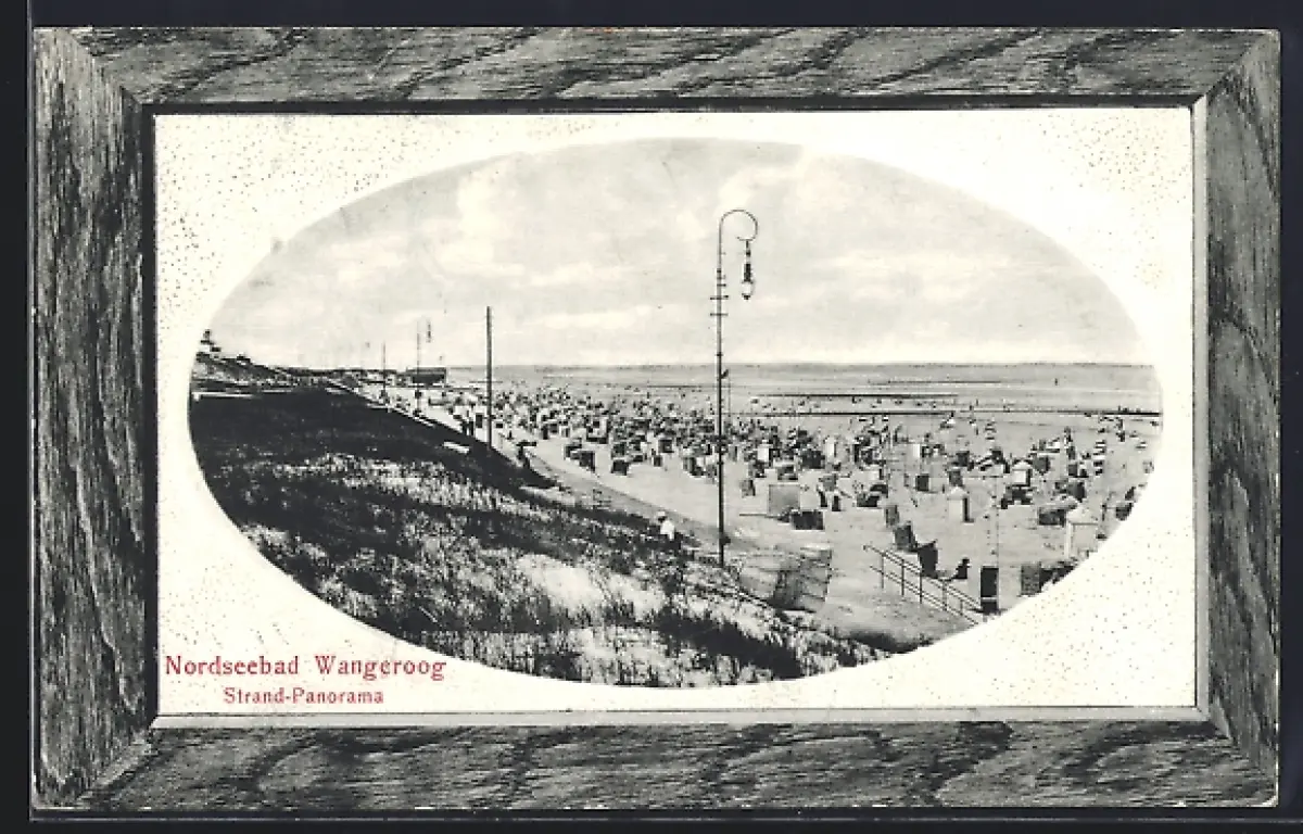 AK Wangeroog, Strand-Panorama mit Strandkörben