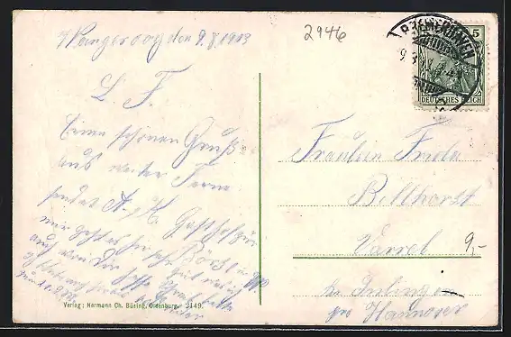 alte Ansichtskarte, gelaufen 1913, Stempelspur, guter Zustand